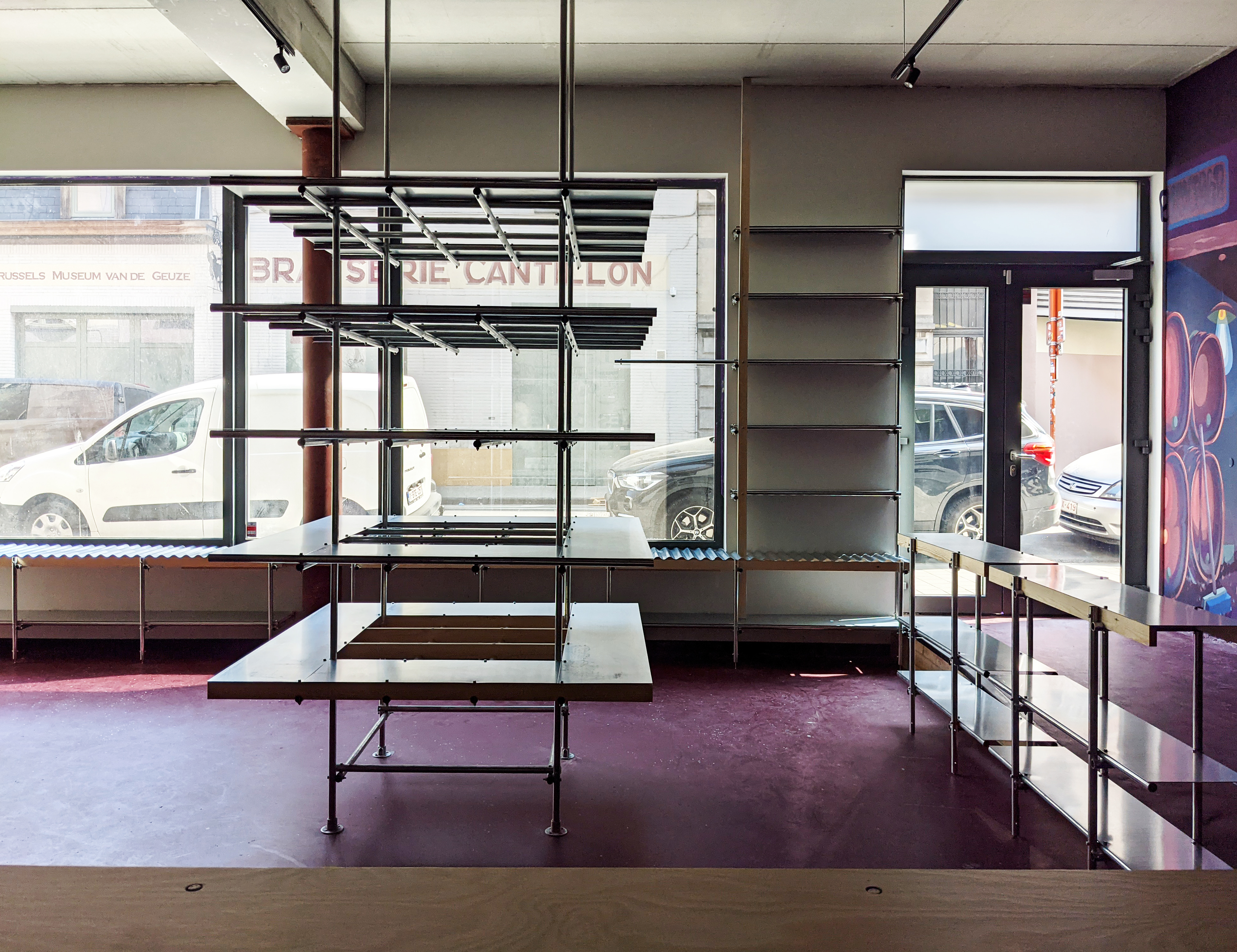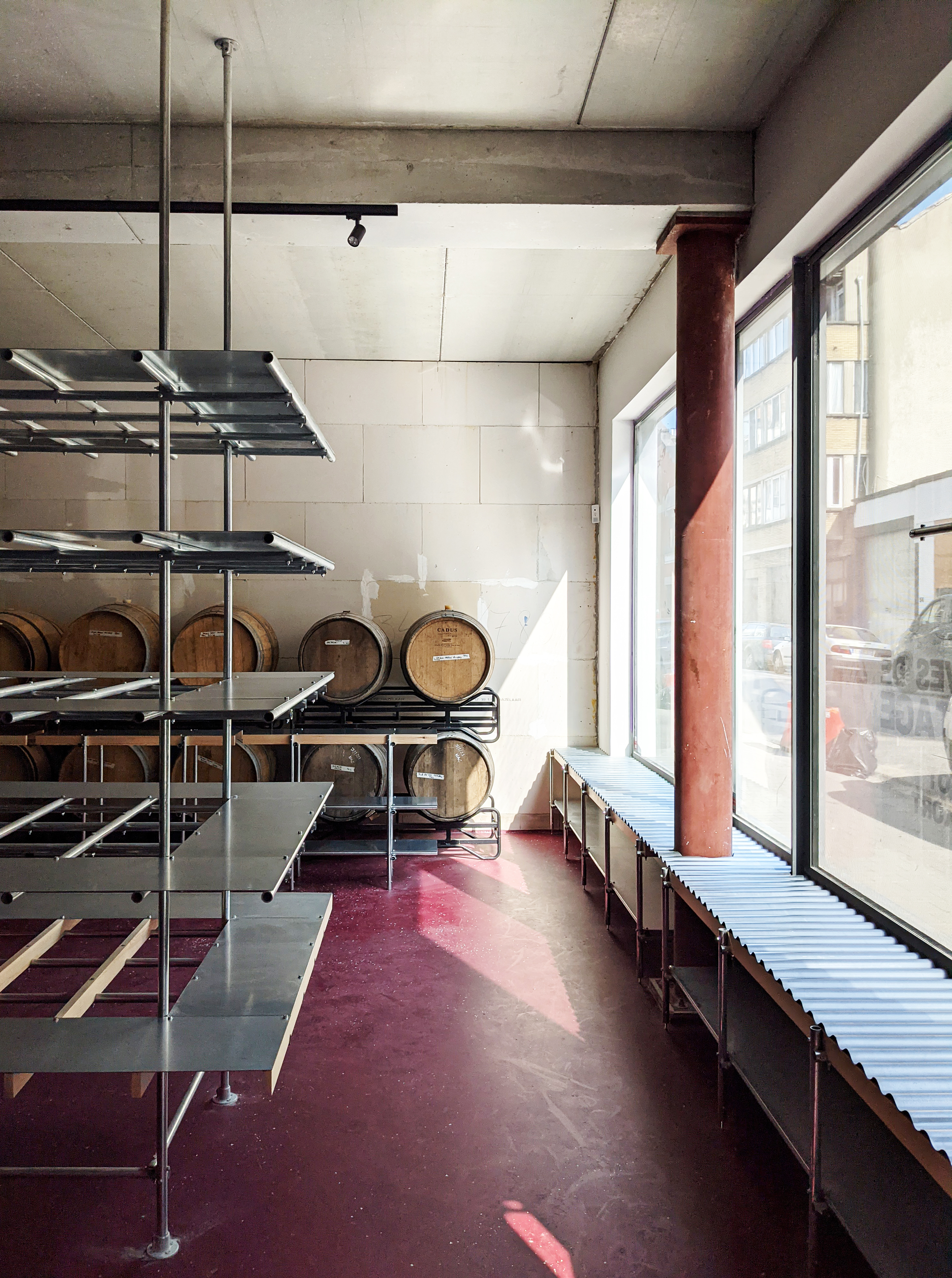 Conception et réalisation de mobiliers d’aménagement pour la nouvelle cave de la nanobrasserie de l’Ermitage à Bruxelles.