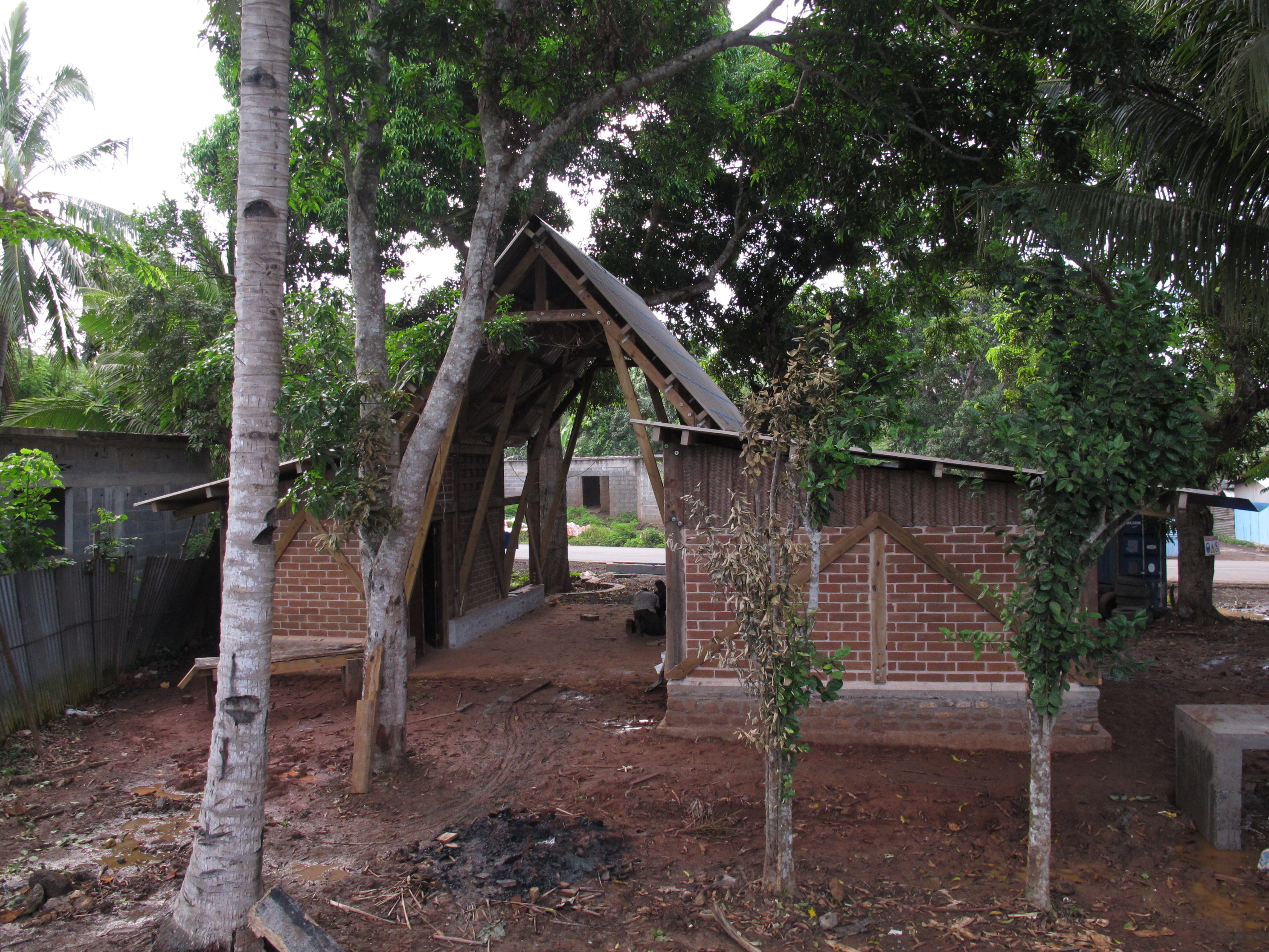 Le faré de projet mêle (re)valorisation des traditions et savoir-faire locaux, construction en Brique de Terre Comprimée et mise en valeur du réemploi de matériaux issus de la déconstruction soignée de la mairie de Sada.