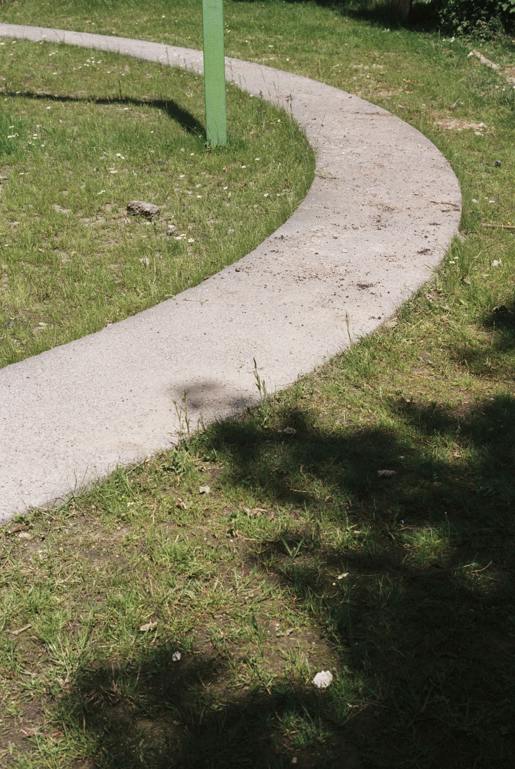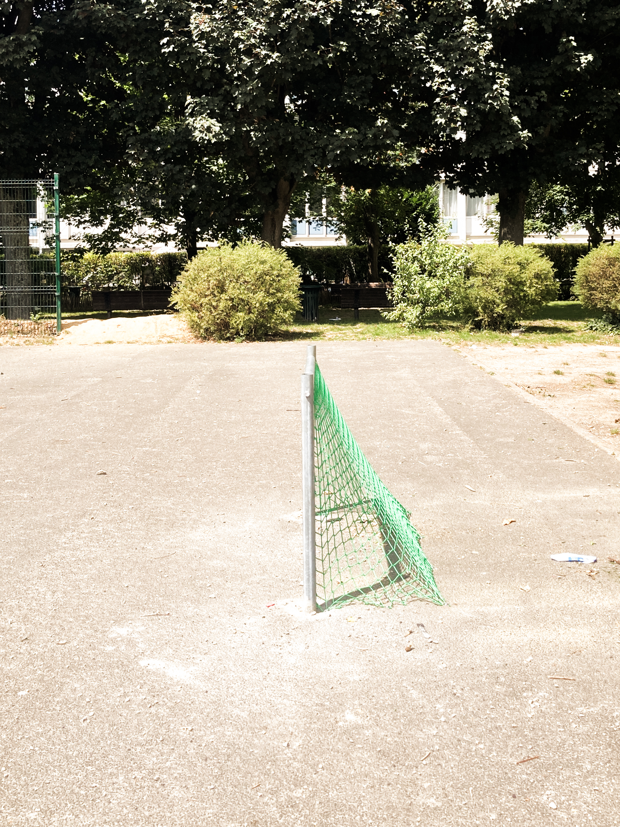 Cette volonté d’infiltrer et de déminéraliser les sols s’accompagne d’un objectif de transformation de l’espace public, afin de l’adapter à des usages plus diversifiés. Ainsi, le terrain de basket, surdimensionné et peu utilisé, est redécoupé en deux pour permettre la création d’une zone de jeu mixte et libre, éloignée des jeux de balle et adaptée aux plus jeunes. Une piste circulaire est tracée, tandis que des modules géométriques ludiques apparaissent grâce à la réutilisation de la matière excavée. Enfin, de petites cages de football complètent le terrain de basket.