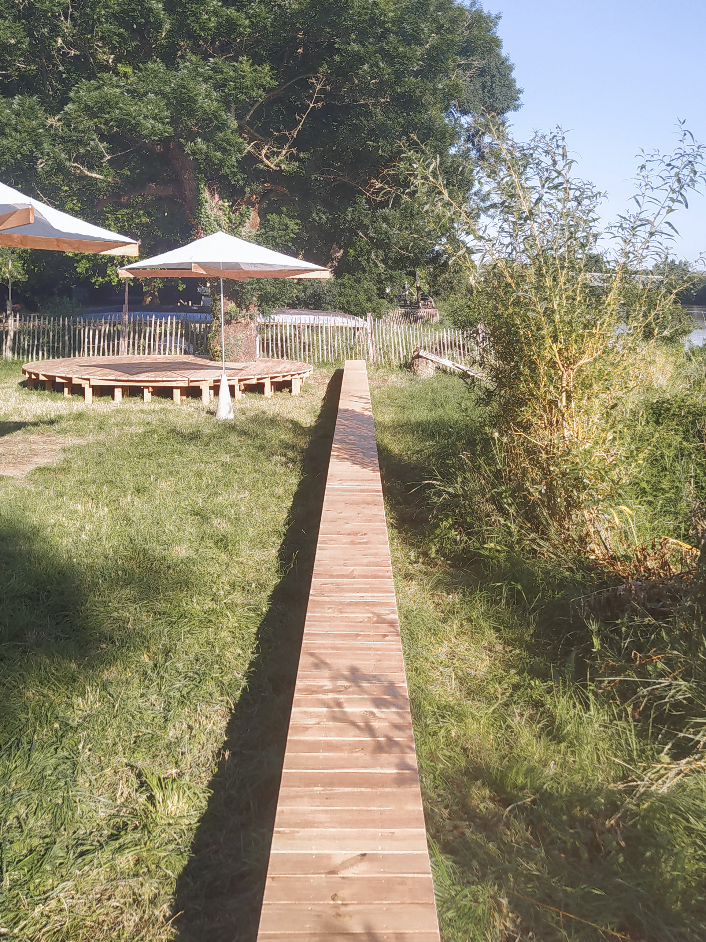 Un geste simple vient orienter et souligner la berge. Le disque est une scène, une terrasse, une assise.